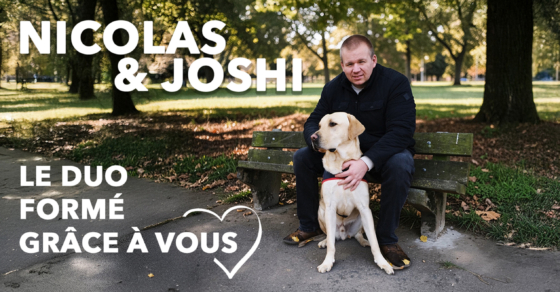 En 2025, grâce à votre générosité lors de l’Opération Violettes, Nicolas a rencontré Joshi, son chien guide.