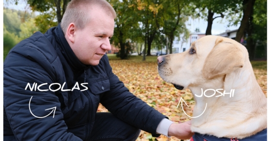 Ce magnifique Labrador blond accompagnera désormais Nicolas dans tous ses déplacements du quotidien.